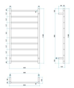 The BS46M Heated Towel Rail is a 600×1080 9 bar polished stainless steel ladder rail which features multiflex wiring. The overall size of the rail makes it ideal for fitting into a narrow space whilst the height allows for three towels to be hung on the rail.
