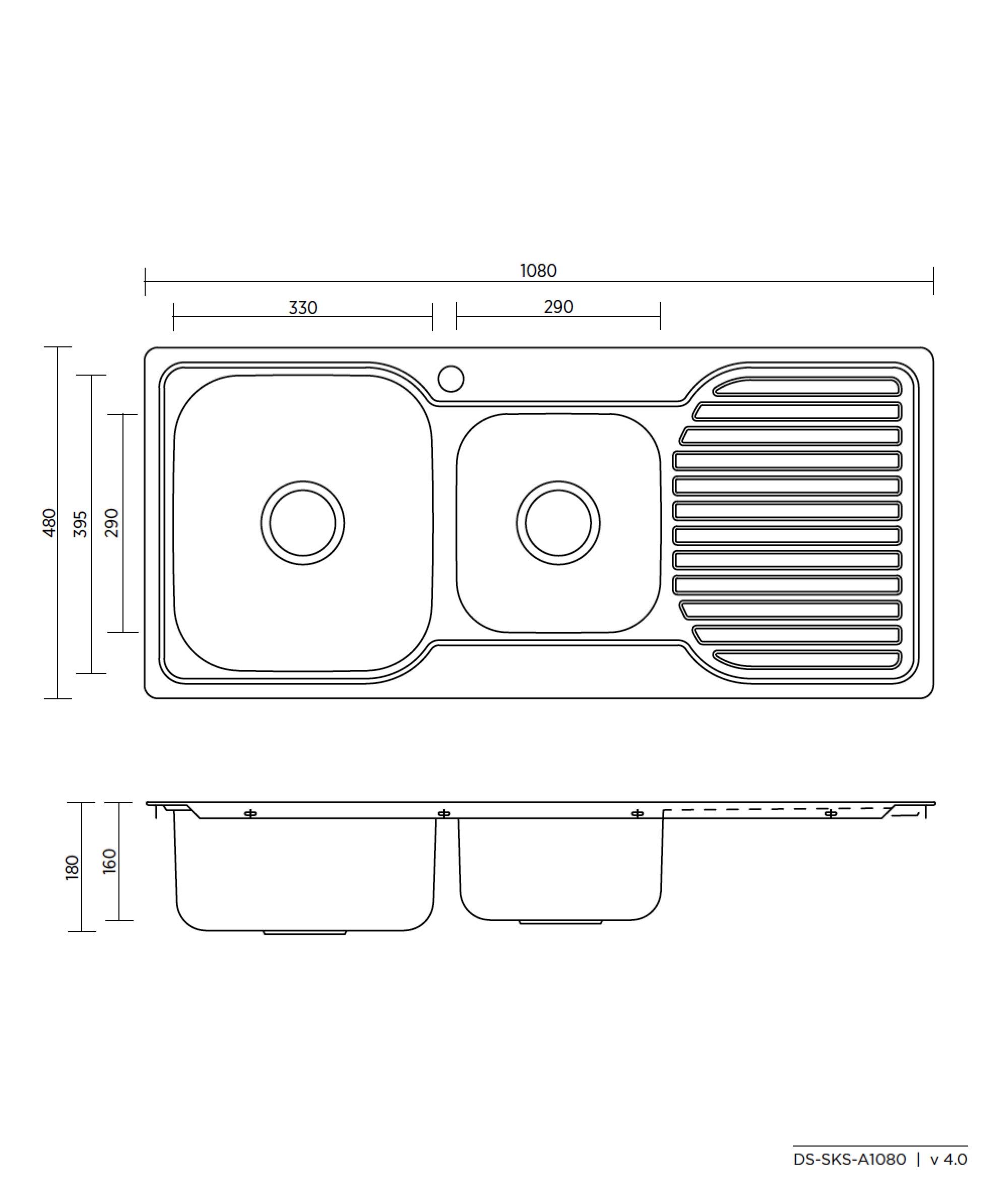 Right Drainer 1 Taphole, Left Drainer 1 Taphole, Reversible Drainer no Taphole