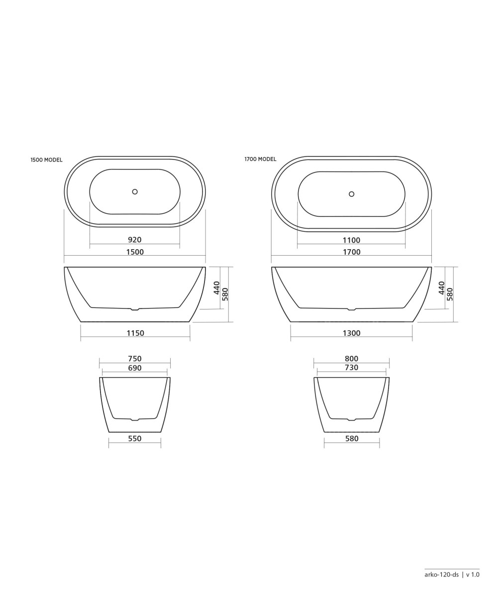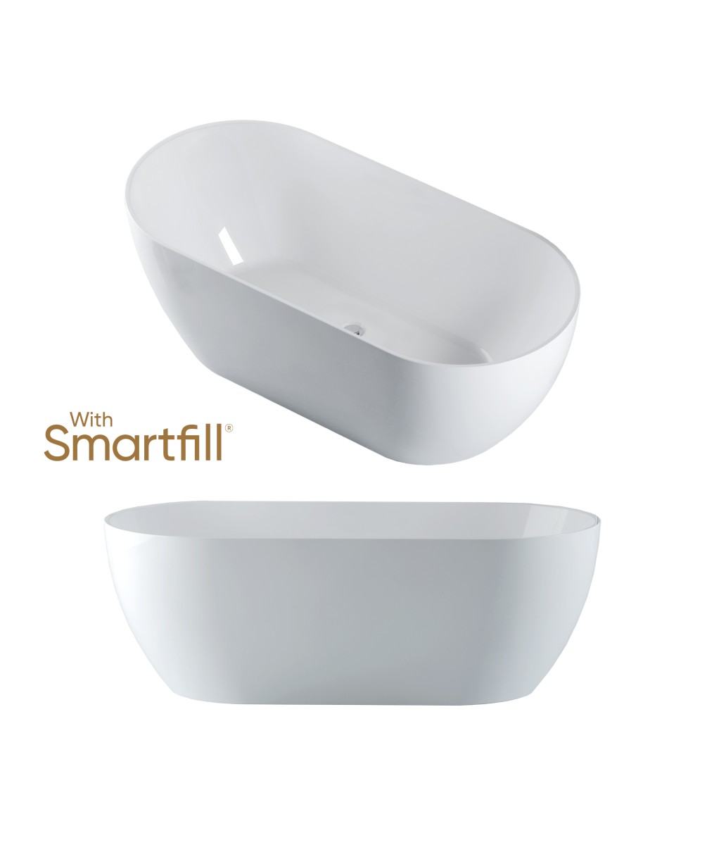 Arko 120 1500 Freestanding Bath with SMARTFILL bath filler. Bath available in Gloss & Matte with the following Bezel and Waste colours: