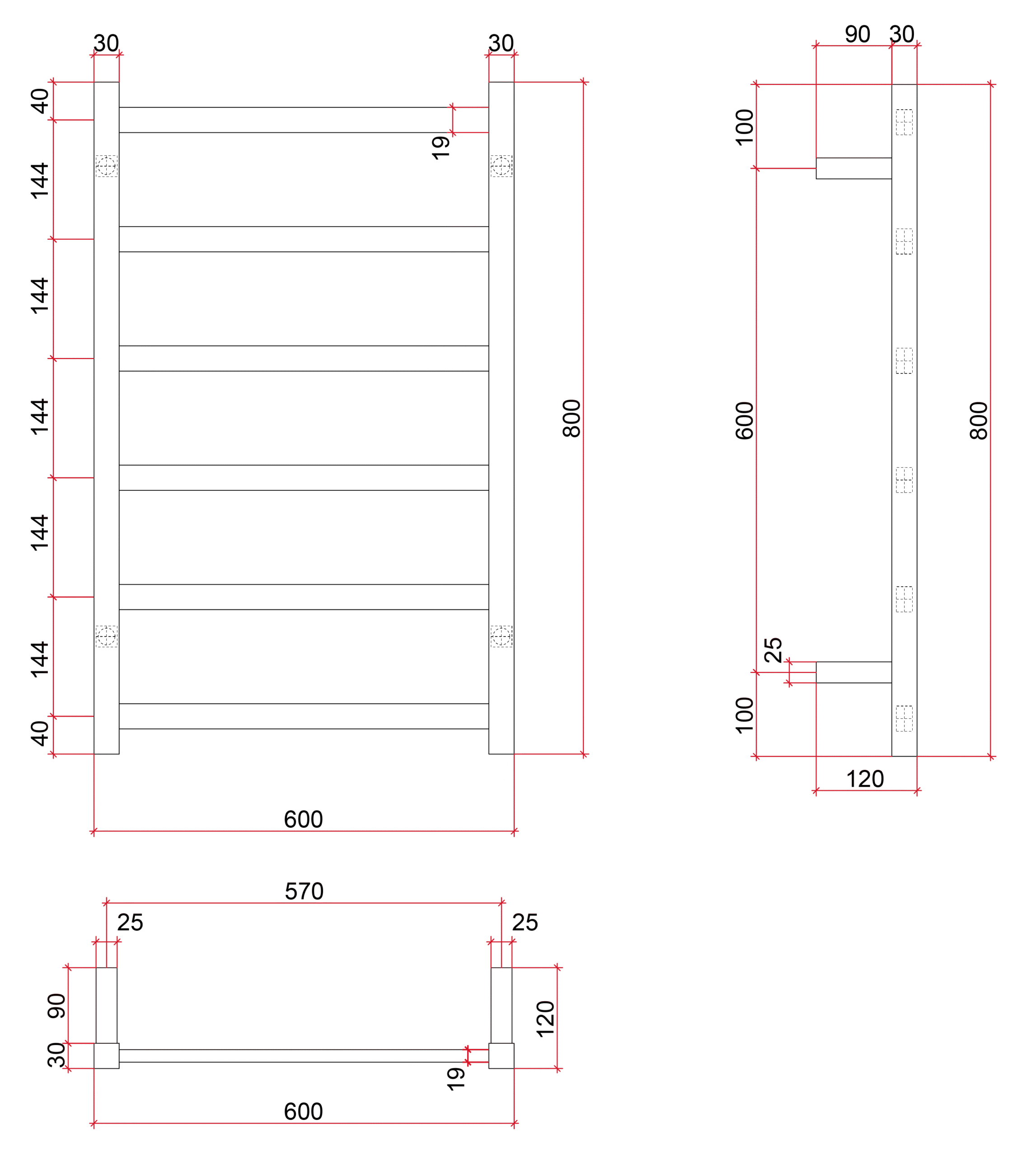 The BS48MB towel heater features multiflex wiring. This means that you have a connection point on the right or left hand side of the rail, this would be typically at the bottom but the rail can be flipped so that it is at the top and provides the option of hardwired or plugin, all as standard out of the box.