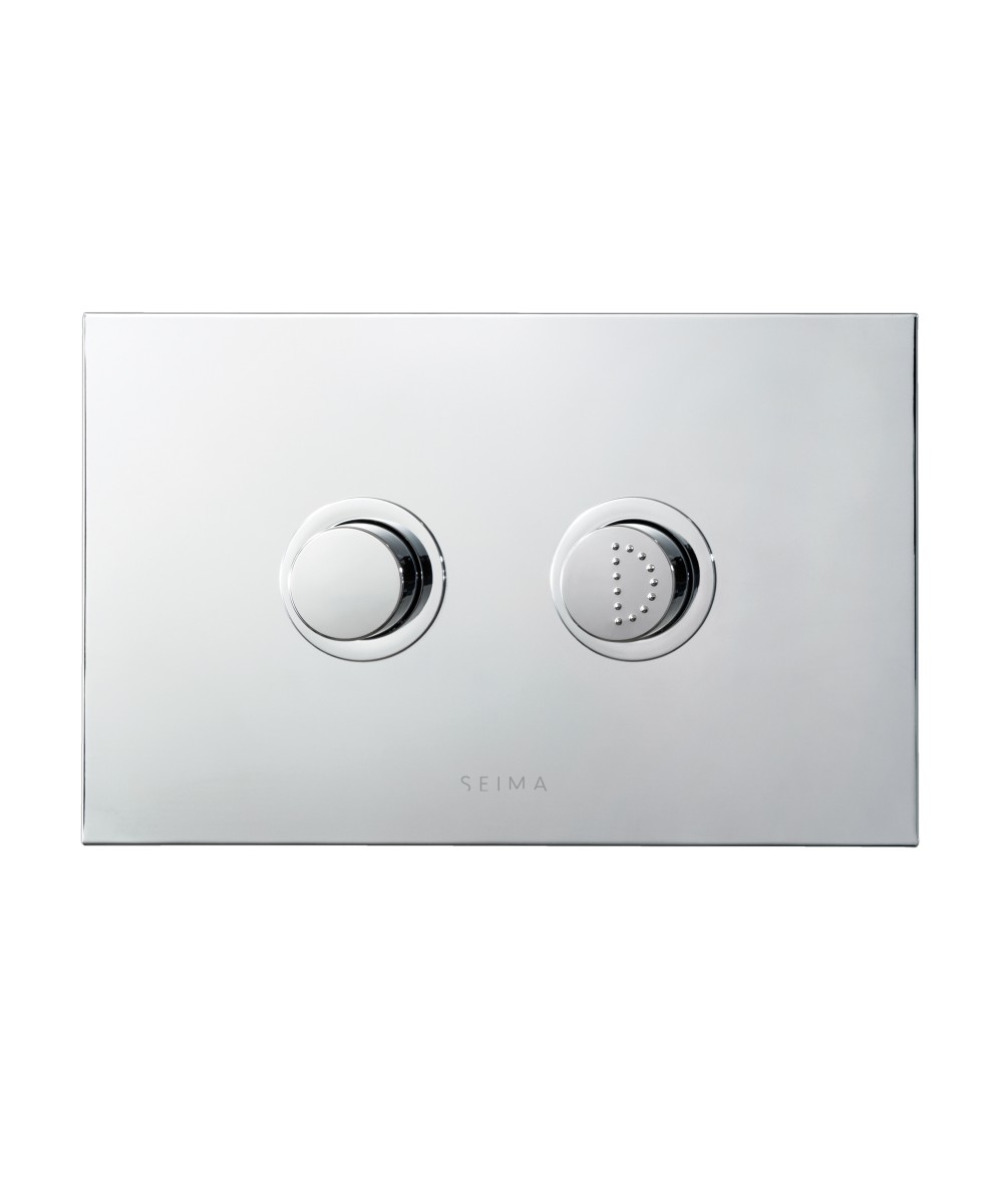 Series 300 Care, raised metal flush button, chrome finish. Pneumatic push button flush plate suits Seima InWall Cisterns