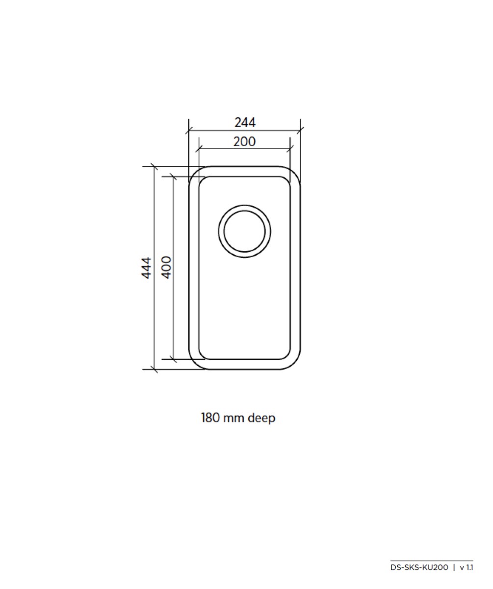Kubic201 Single Bowl Inner 200x400x180mm (Overall 244×444) silk finish, undermount or above mount, includes basket waste. Available without overflow or with overflow.