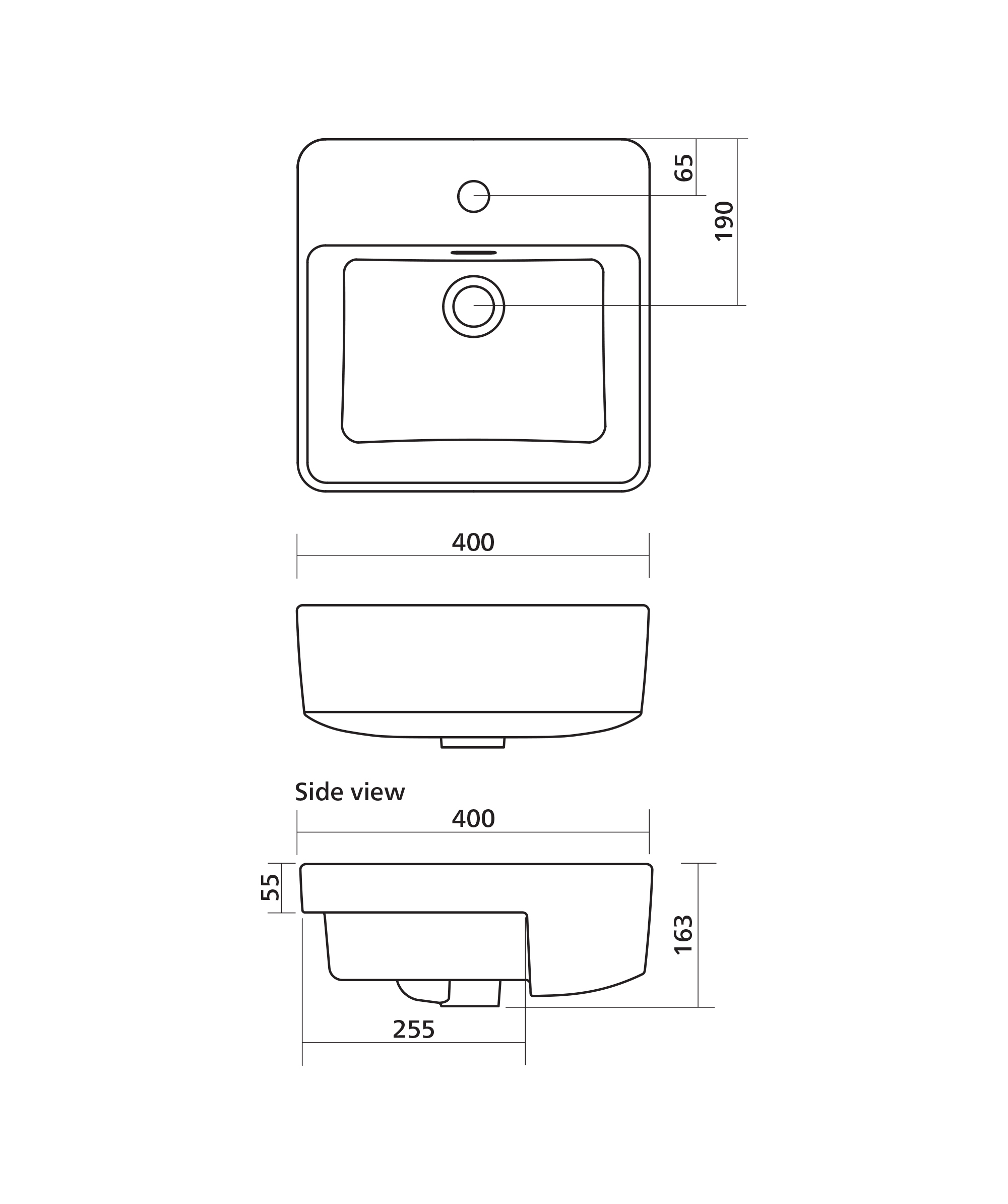 Contemporary look with refined rim and glazed slim design overflow. Waste positioned at rear of basin to reduce splashing.