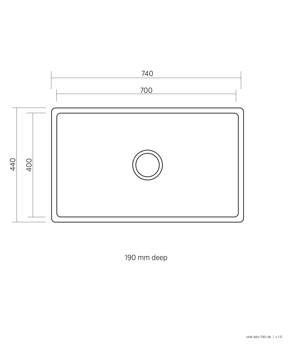 Leto 700 Stainless Steel Silk Finish Single Bowl. Undermount or abovemount includes 90mm basket waste. Available with or without overflow.