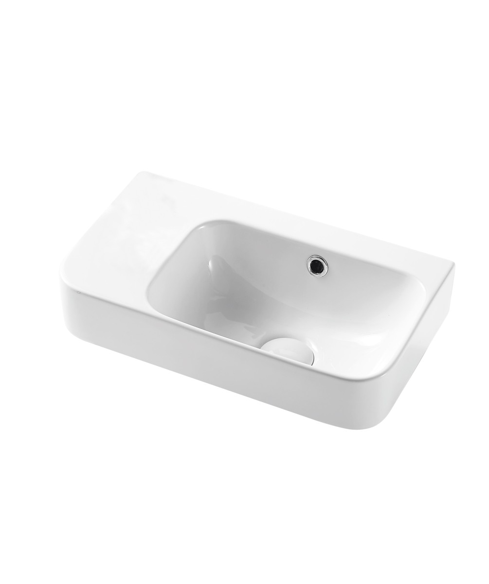 LIMNI 260 Ceramic Basin. Wall. Integrated Overflow. 450x260x155mm. White. Gloss. 32mm Waste – not included.LIMNI 260 Wall Basin White. Available with No Taphole on right or 1 Taphole on right