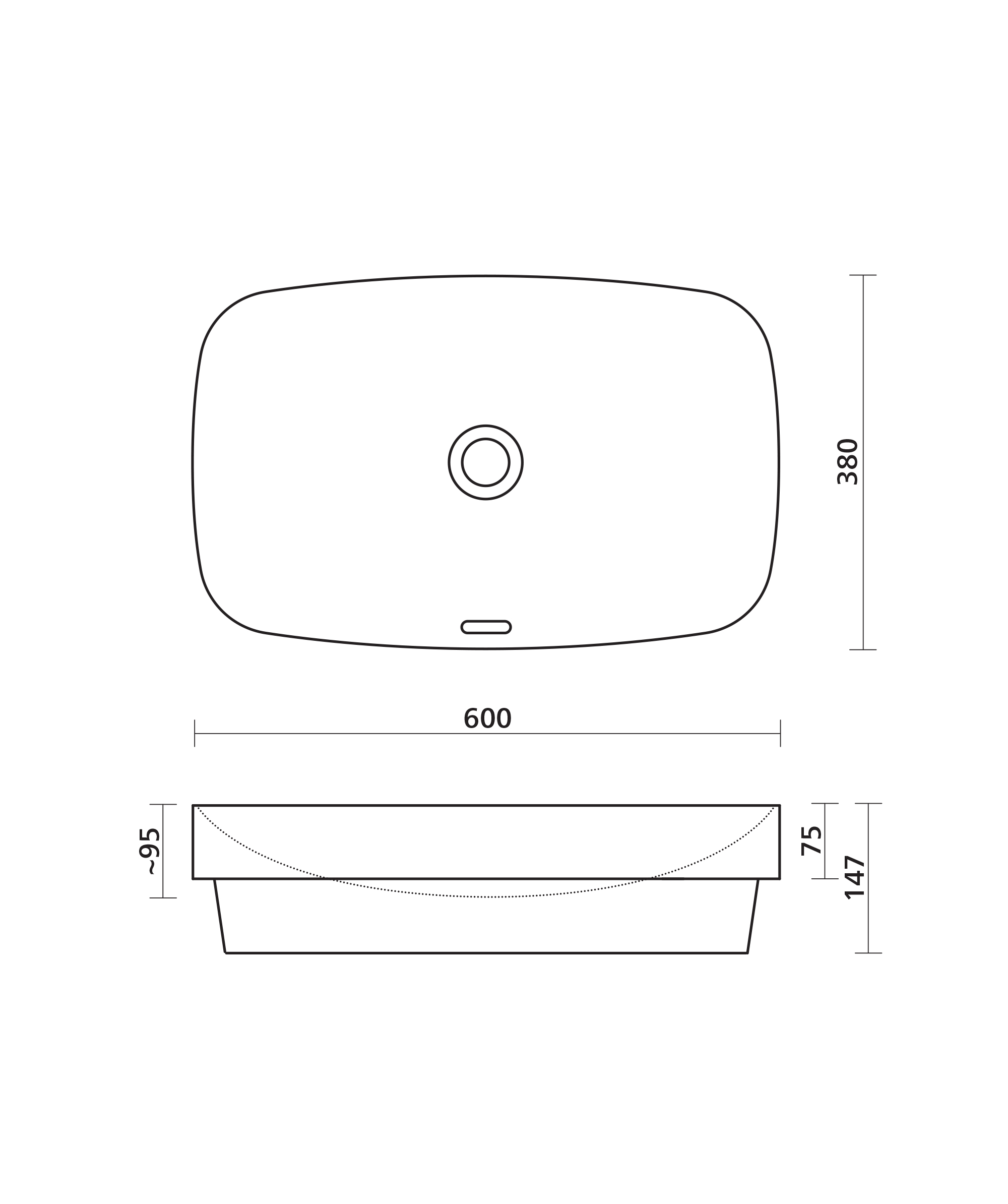 - Dimensions 600mm (L) x 380mm (W) x 75mm (H)