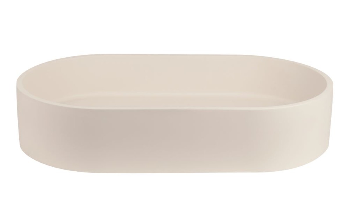 Pill concrete basin with smooth opaque finish. Ash Wite Only.