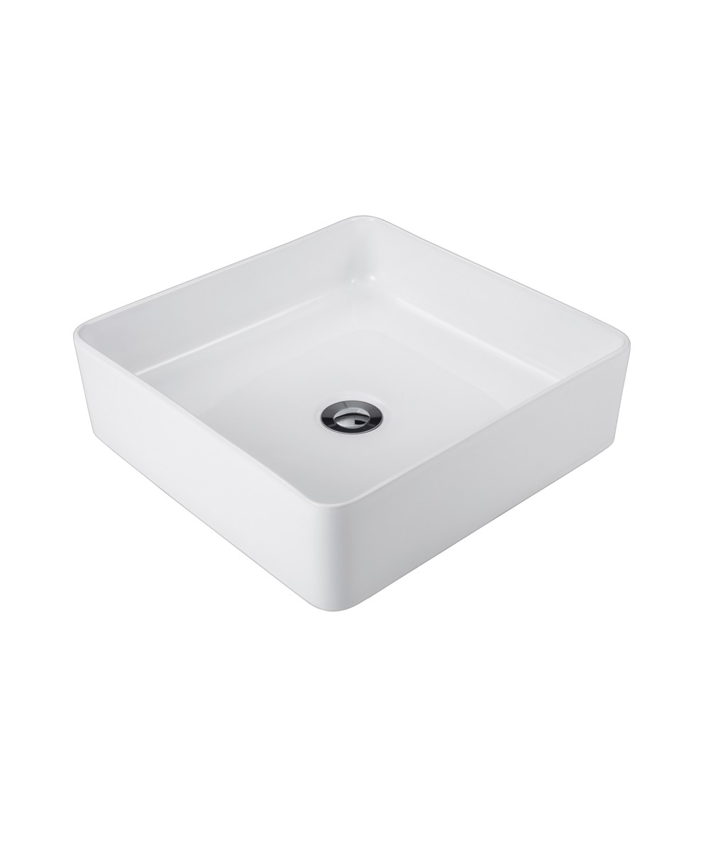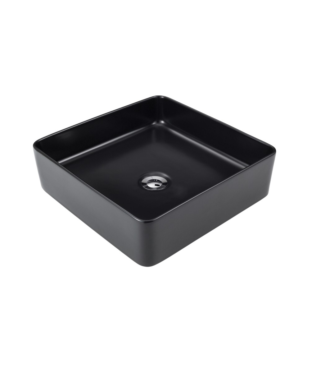 PLATI 029 Slimline above counter square ceramic basin with superfine rim. 400D x 400W x 120H mm, No taphole, No overflow PLATI 029 Basin Above. Available in Matte Black or White