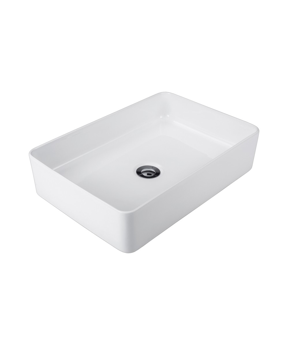 Plati SBC-030 Slimline above counter rectangular ceramic basin with superfine rim. 500D x 350W x 120H mm, No taphole, No overflow. Available in Matte Black or White