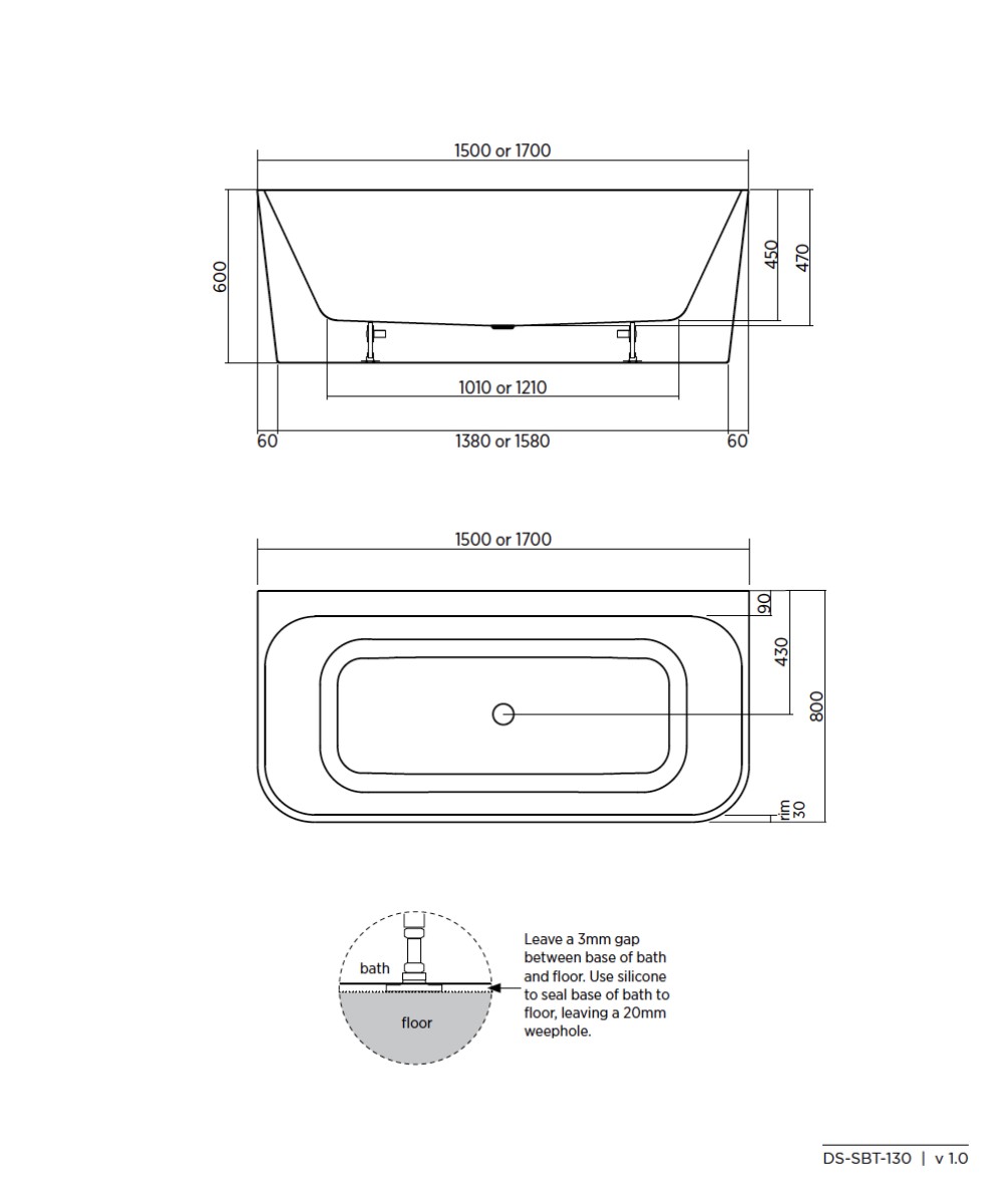 PLATI 130 1700 Back to Wall Bath with SMARTFILL bath filler.
