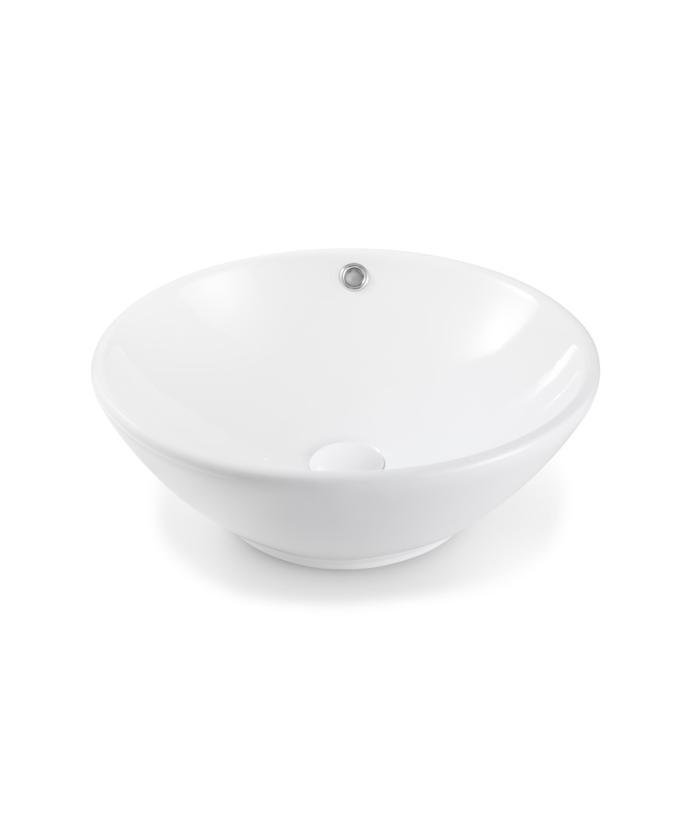 SYROS 005 ceramic abovemount basin Classic round bowl, 440diax150Hmm, no taphole, overflow, 32mm waste SYROS 005 Basin Above White Overflow (OF)