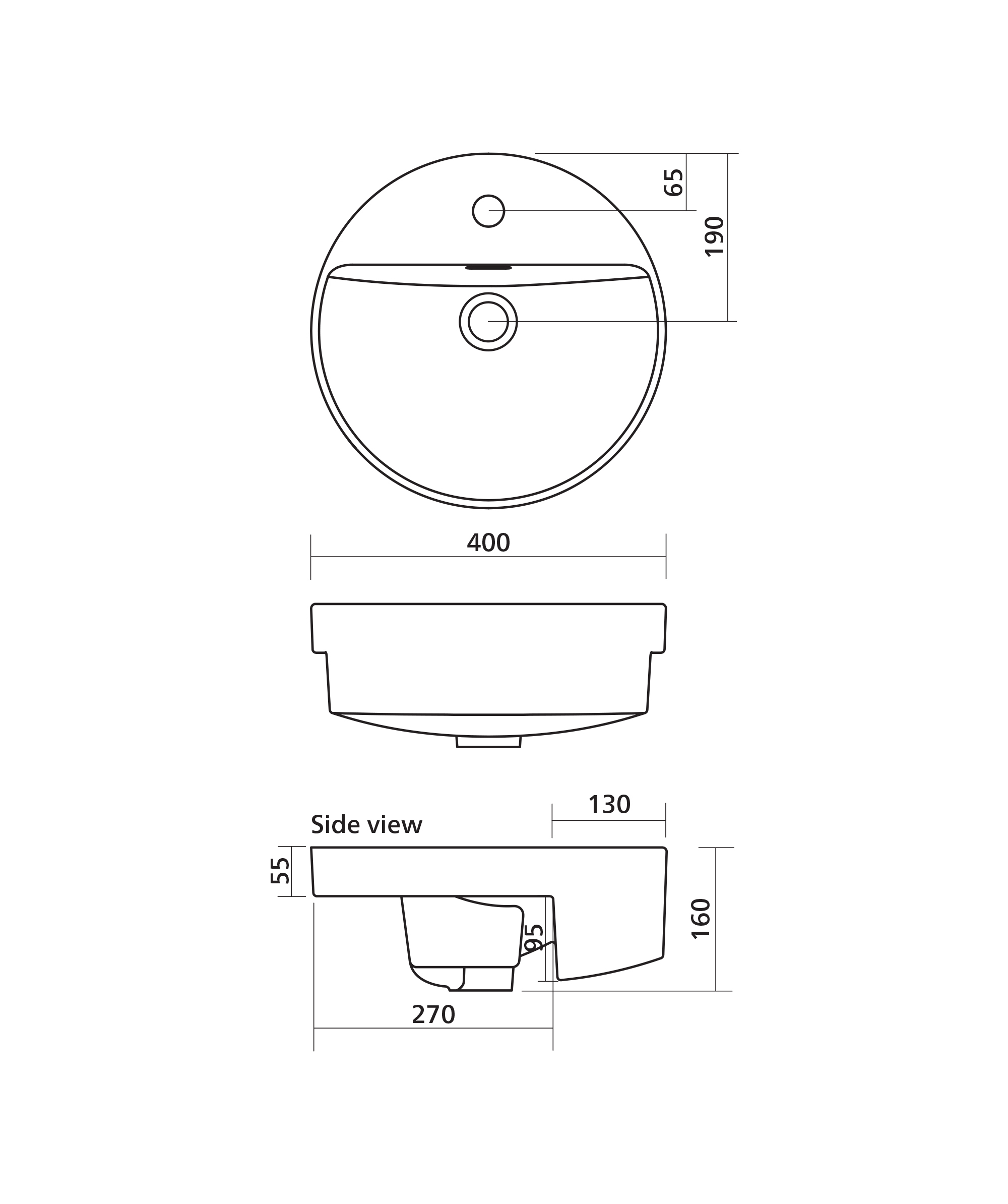 Contemporary round semi recessed basin with distinctive curved bowl, tap platform and slim design overflow.